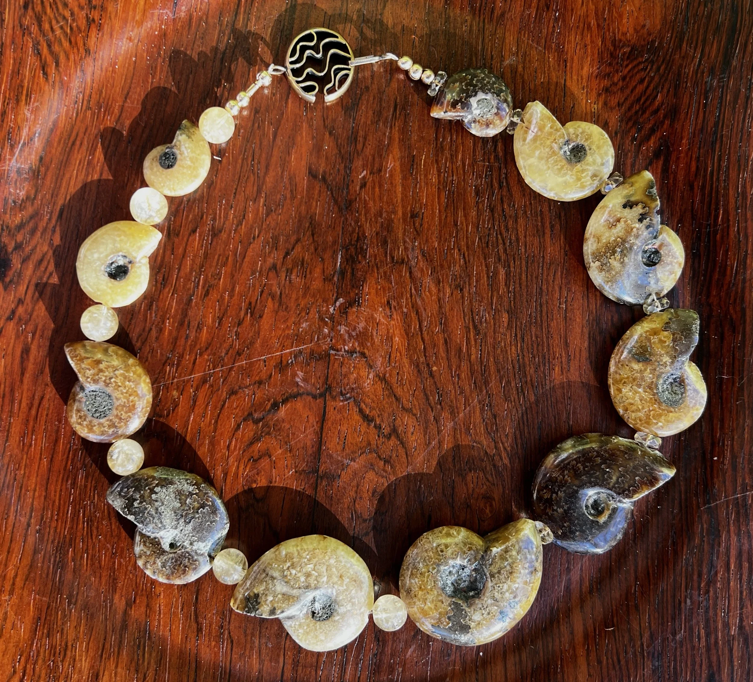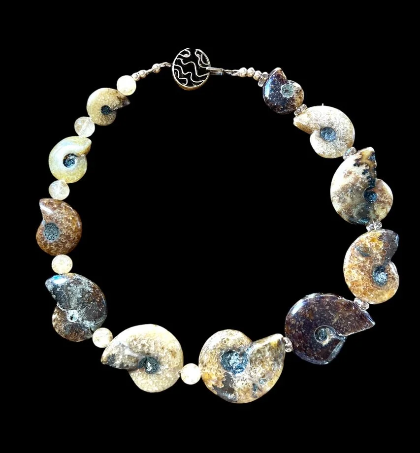 Categories: All Agate Crazy Lace Agate Montana Agate Web Agate Amazonite Amethyst Prasiolite Ametrine Ammonite Aquamarine Azurite Beryl Bone Bronzite Caned Glass Carnelian Cat's Eye Chalcedony Hawkeye Chrysocolla Chariote Chrysoberyl Chrysophrase Multi-stone Citrine Coral Crystal Druzy Dumortierite Fordite Garnet Goshanite Hawk Eye Helidor Herkimer Diamond Iolite Kyanite Indigo Kyanite Jade Watermelon Jade Jadeite Lava Lodaliite Jasper Breciated Jasper Bruno Jasper Bumblebee jasper Cherry Creek Jasper Cocoa banded Jasper Crazy Lace Jasper Dragon Stone Jasper Ocean Jasper Picture Jasper Polychrome Jasper Tree Fern Jasper Wood Jasper Vintage black jasper Wild Horse Picture Jasper Labradorite Lapis Lazuli Larimar Larkivite Montana Agate Moonstone Muscovite Obsidian Golden Sheen Obsidian Snowflake Obsidian Onyx Opal Boulder Opal Koriot Opal Dendritic opal Ethiopian Opal Green Opal Pegmatite Peridot Pearls Peacock Pearl Phrenite Pietersite Quartz Crystal Quartz Electroformed Quartz Rose Quartz Rutilated Quartz Mexican Fire Opals Spiderweb Quartz Strawberry Quartz Tangerine Quartz Rhodochrosite Ruby Sapphire Scorzalite Serpentine Septarian Smokey quartz Solar Quartz Sunstone Topaz Imperial Topaz Tektite Tourmaline Watermelon Tourmaline Indicolite Tourmaline Tiger Eye Tigereye/blue Tiger Iron Turquoise Ukanite White Buffalo Turquoise Shell South African Turban Shell Horn Wood Clasps Adjustable Clasp Push Clasp S clasp Convertible Lobster clasp CZ Lobster Clasp Spiny Oyster Fancy Toggle Bronze Toggle Copper toggle Gold filled Toggle Sterling Silver toggle clasp Vermeil Toggle Magnetic clasp Sterling Silver Clasp Choker Style Long length 14kt gold bead Ammonite Ammonite Fossil Beaded Necklace $395.00