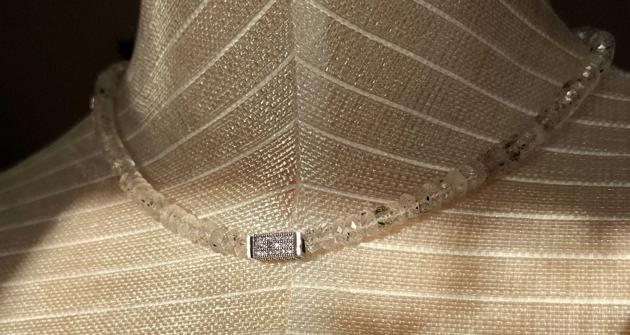 Necklaces › Moss Amethyst with CZ Station. Moss Amethyst with CZ Station. $255.00 Chocker style faceted rondel Moss Amethyst necklace with a CZ station. and adjustable clasp16” Chocker style faceted rondel Moss Amethyst necklace with a CZ station. and adjustable clasp16” Add To Cart Added!